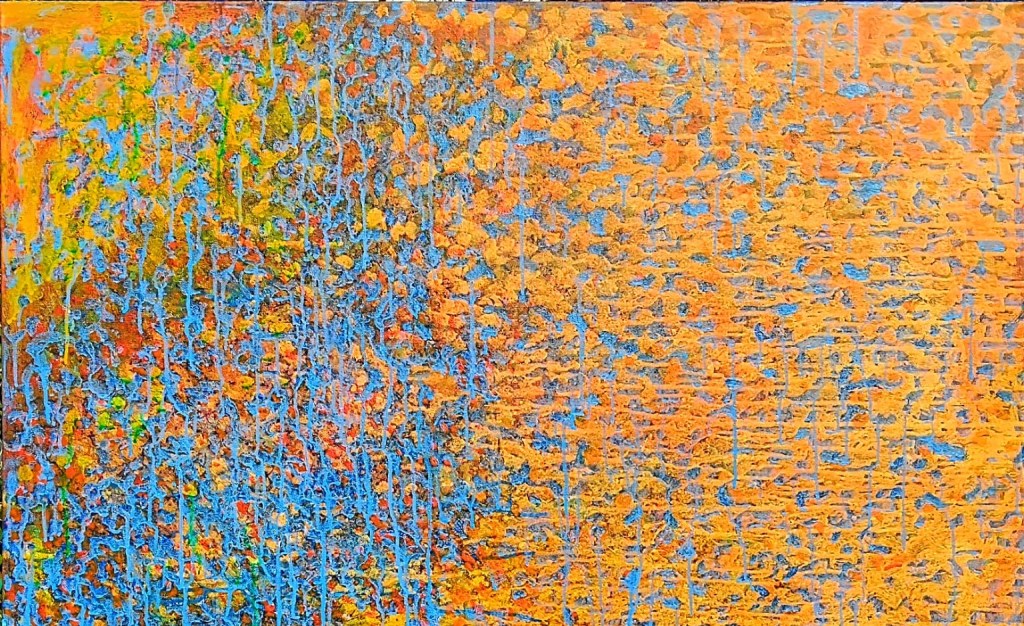 The Estuary Project is a collaboration between Paul Davey, one of the original artists at the Vortex Gallery in the 1980’s, and Irving Kinnersley, electro-acoustic composer. It focuses on their responses to the Steart Marshes wetlands reserves on the Somerset coast, with paintings and immersive soundscape.